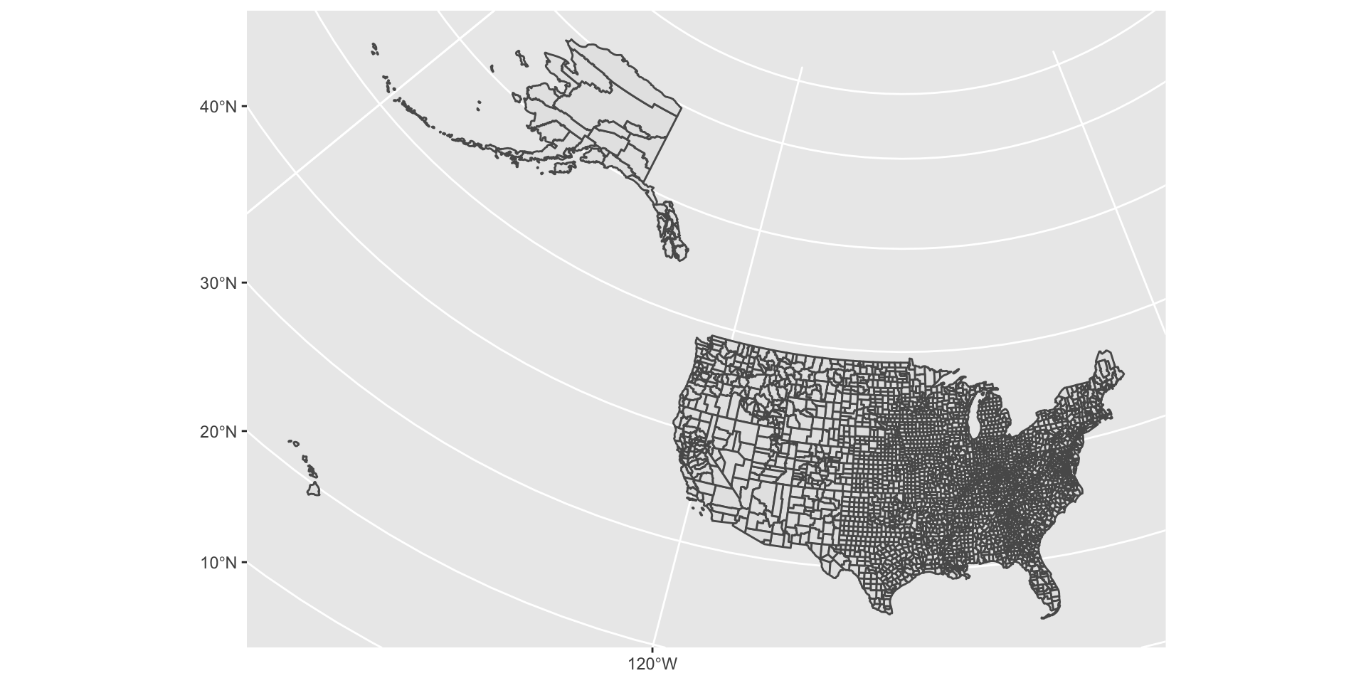 library(tidyverse)library(sf)# you might have some data in a shapefile -- # data/shapefile_unzipped/# -- cb_2013_us_county_20m.dbf# -- cb_2013_us_county_20m.prj# -- cb_2013_us_county_20m.shp# -- cb_2013_us_county_20m.shp.iso.xml# -- cb_2013_us_county_20m.shp.xml# -- cb_2013_us_county_20m.shx# -- county_20m.ea.iso.xmlcounties <-read_sf(here("data/shapefile_unzipped"))