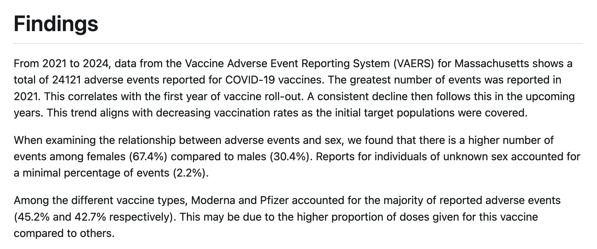 group 6: Covid-19 Vaccine Adverse Reactions in Massachusetts From 2021-2024: A VAERS Analysis