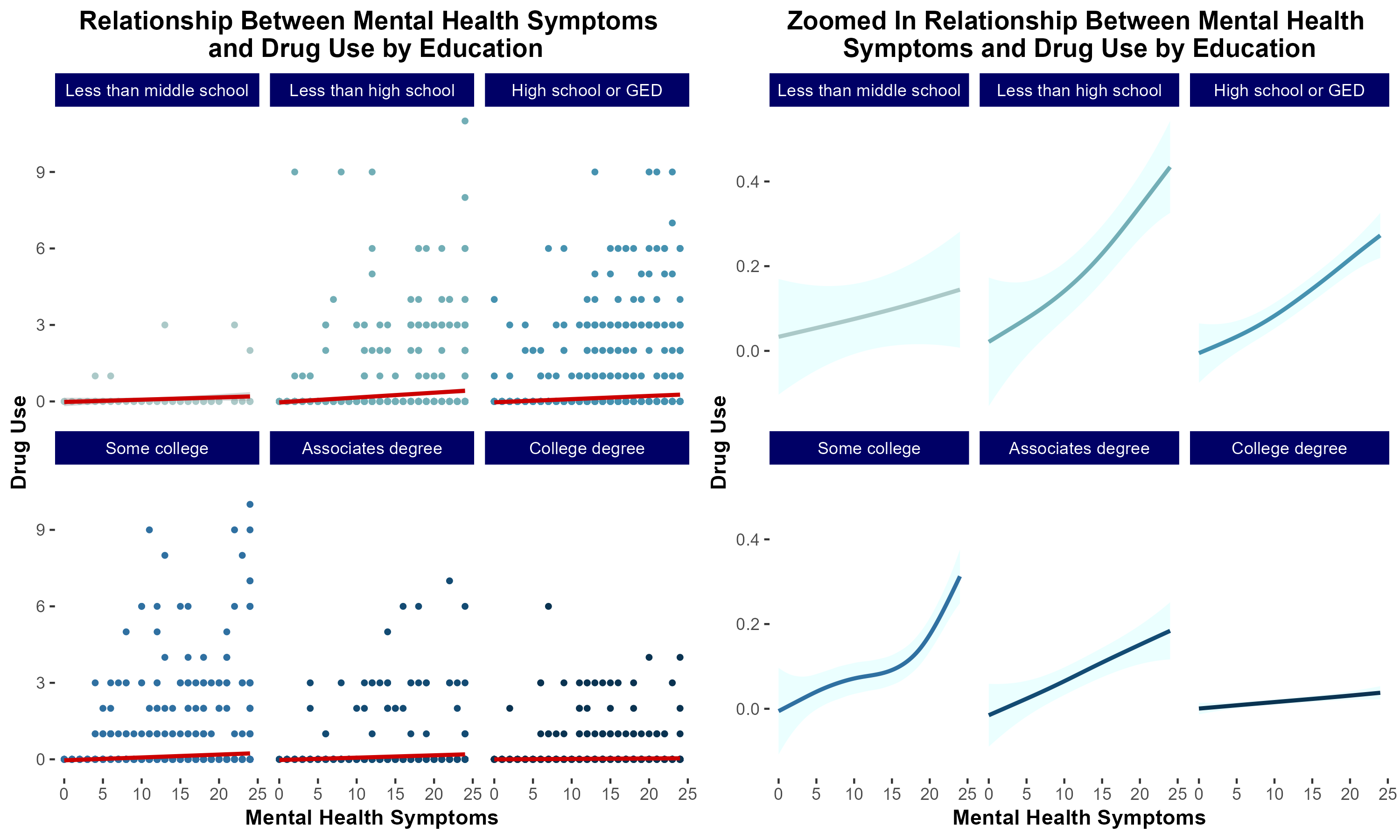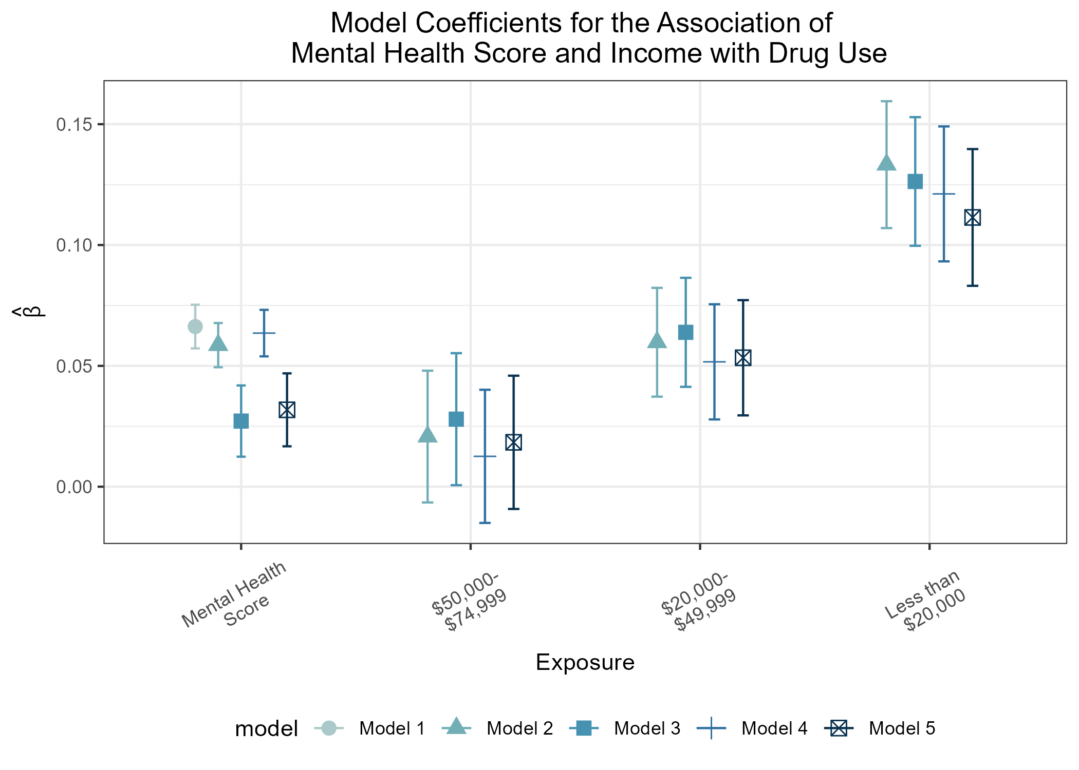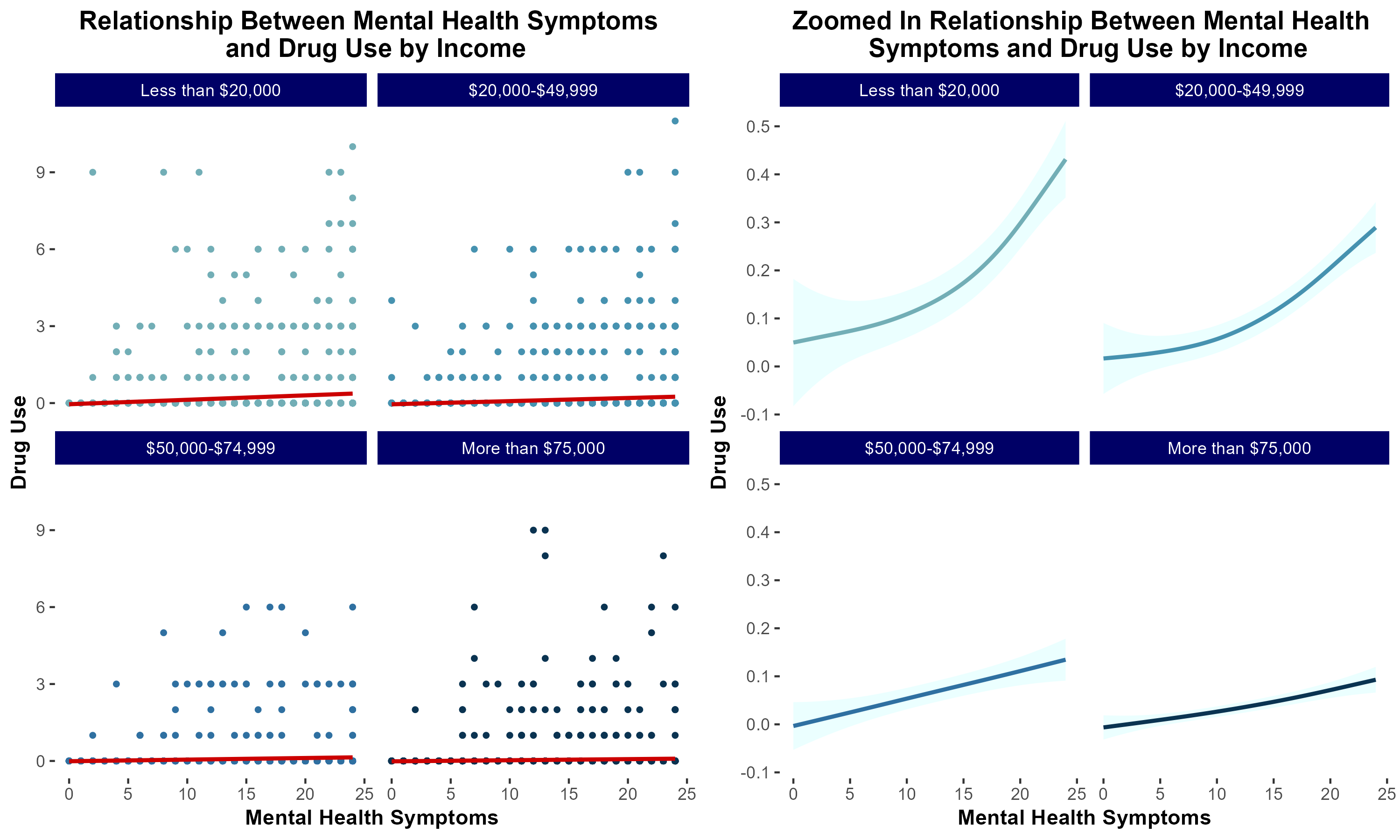 In summary, in lower income households, mental health distress is more strongly associated with increased risk of substance use disorder.