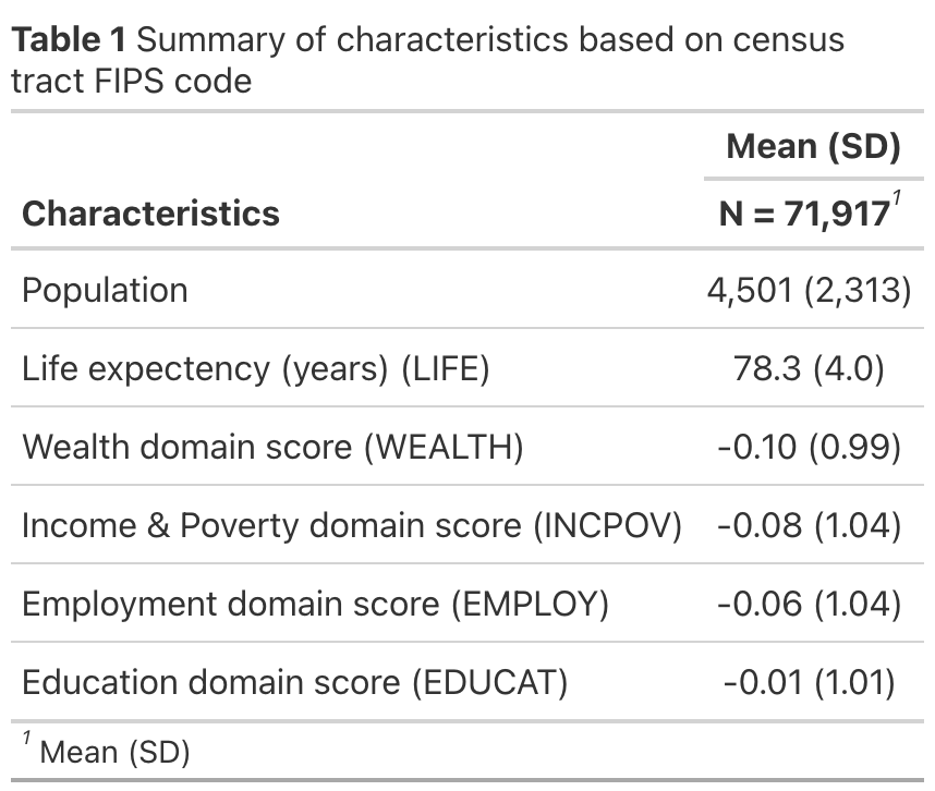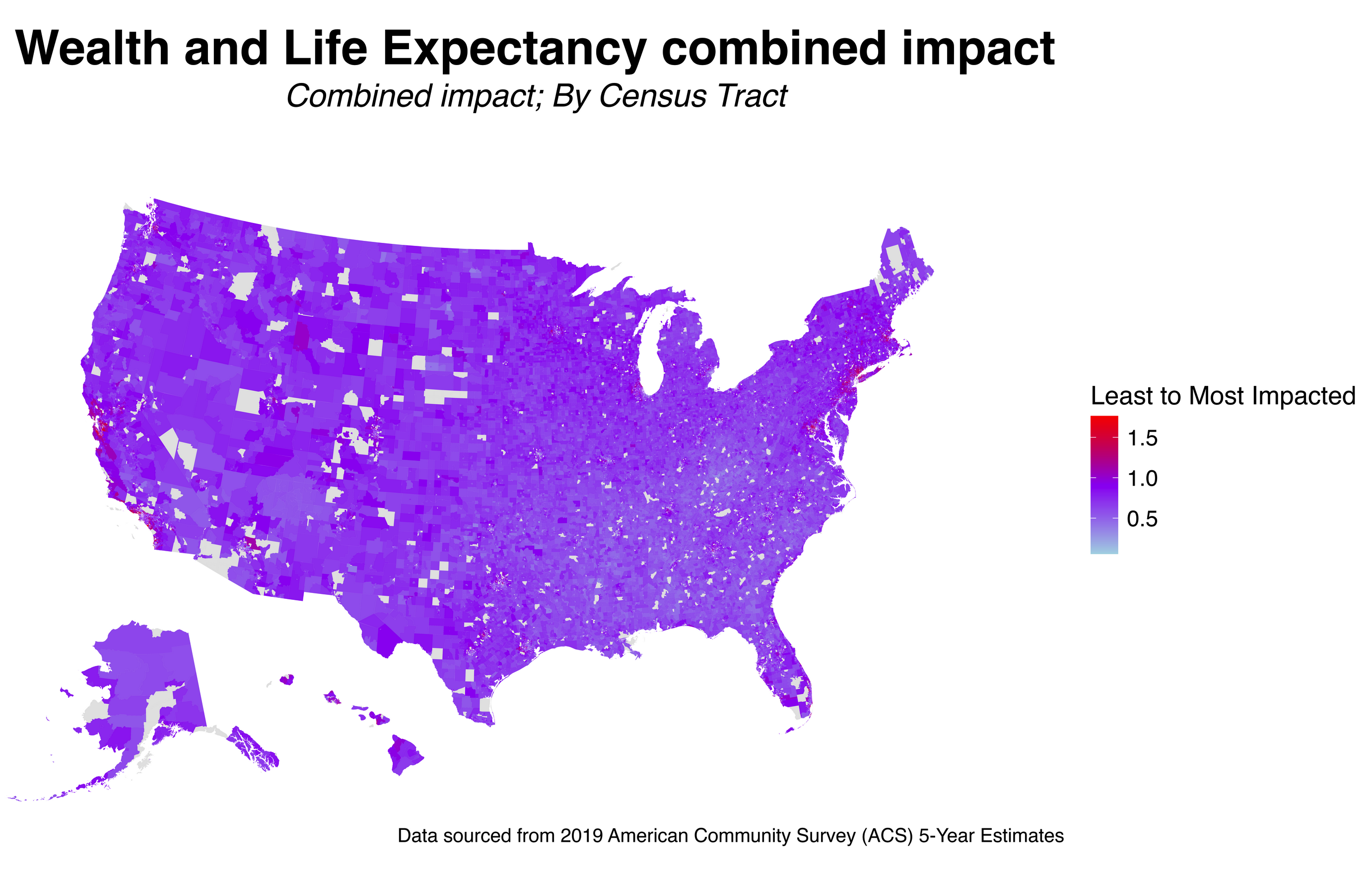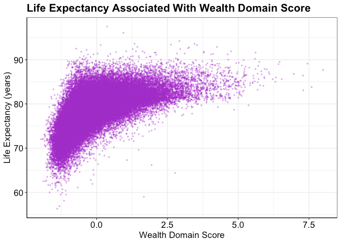 For this final group research project, we want to assess the association between wealth and life expectancy using the US census track data level. We hypothesize that wealth is positively associated with life expectancy.