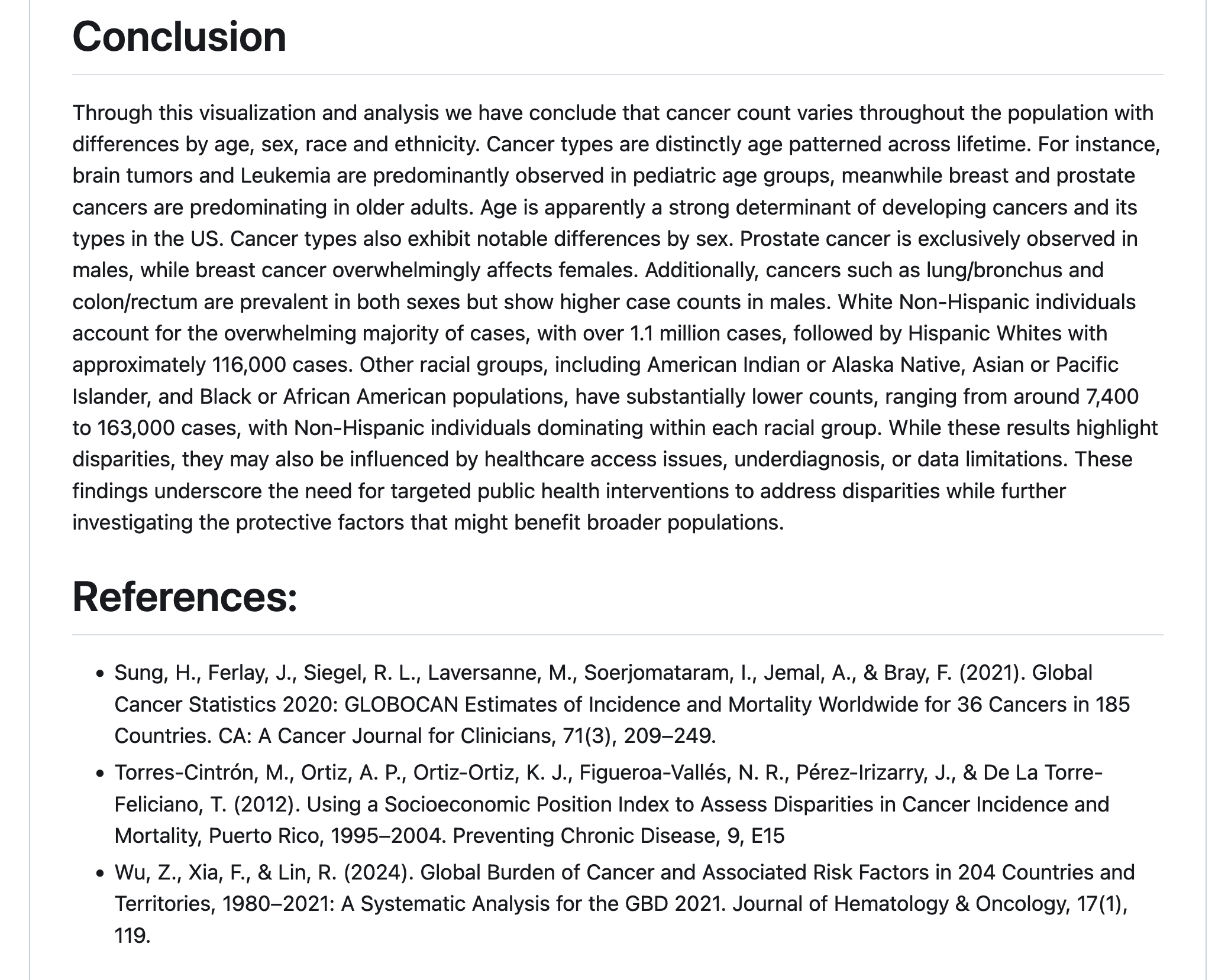 By leveraging statistical and visualization techniques, we aim to facilitate a deeper understanding of cancer patterns across different population subgroups.