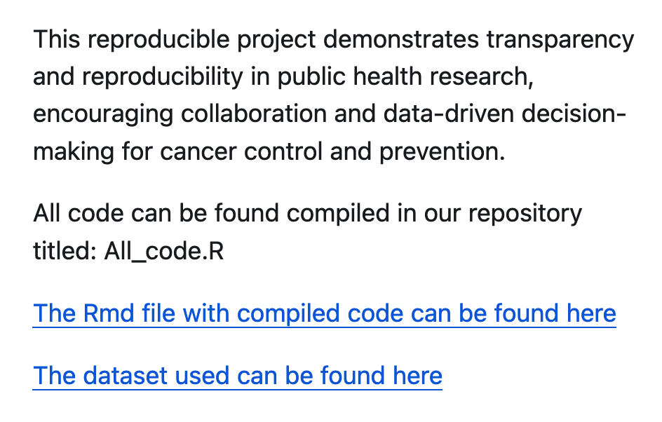 What they wouldn’t have been able to do before taking the class: Many of us are relatively new to R, so to make a whole project (albeit a quickly made one) is quite the feat. We learned how to apply our biostatistical and science communication training to effectively chalk up a project and create deliverables that tell a story about the data.
