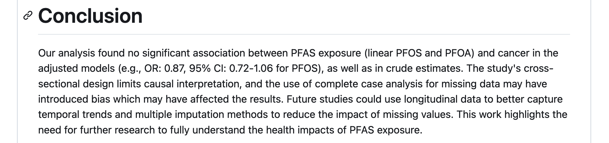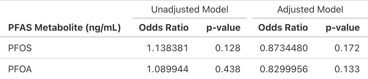 We were curious whether associations were still notable between these legacy PFAS compounds and cancer